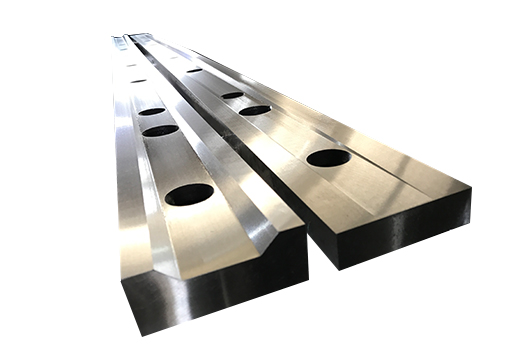 剪板機的刀片材質一般有T10、9CrSI、6CrW2Si、Cr12MoV 、H13,合金鋼等幾種材質。